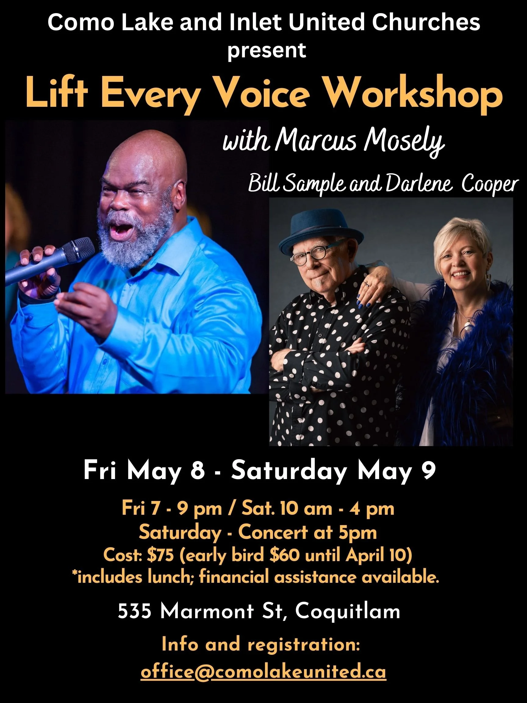 Join the powerhouse trio of Marcus Mosely, Darlene Cooper, and Bill Sample for a transformative two-day immersion into the heart of Gospel music. From its roots in spirituals to its influence on Jazz and R&B, discover how Gospel serves as a universal language for social justice, connection, and unbridled joy.